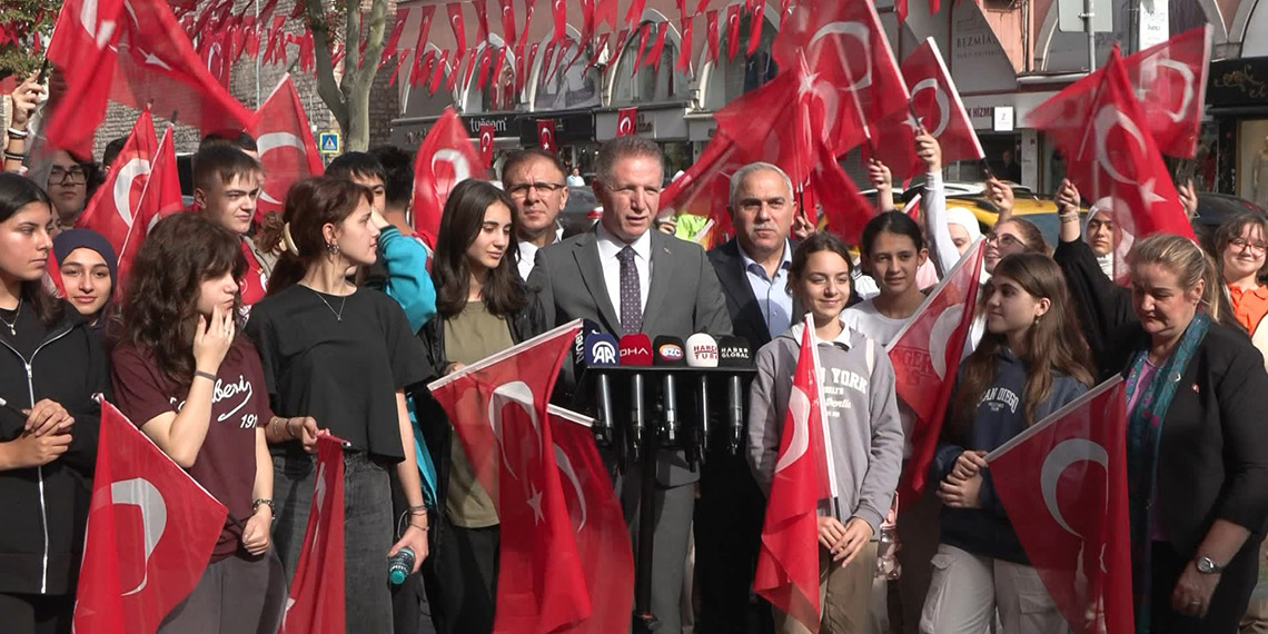İstanbul Valisi Davut Gül, “İnsanlık tarihi herhalde geçmişte eşi benzeri görülmemiş, en sıkıntılı günleri yaşıyor. Özellikle İsrail’in Filistin’de yaptığı katliamlar, zulüm bütün insanlığın içini sızlatıyor, vicdanlarını sızlatıyor. Ama aynı zamanda da Cumhuriyetimiz 100. yılını geride bırakıyor. İkinci yüzyılın arifesindeyiz; Türkiye yüzyılına başlamak üzereyiz. Cumhuriyet son yüzyıldaki en önemli kazanımlarımızdan biri. Cumhuriyetimizin doğum günü. Bir hafta sonra, inşallah 29 Ekim’e girmiş olacağız ve ikinci yüzyıla, Türkiye yüzyılına başlayacağız.