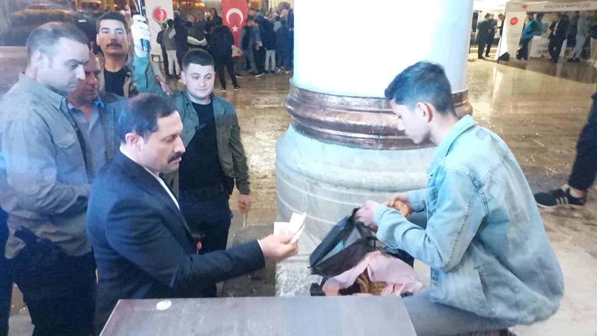 Resul Çelebi de “Sağ olsun valimiz bütün simitlerimi aldı. Yağmur altında beklemek zorunda kalmadım. Teşekkür ediyorum” ifadesini kullandı.