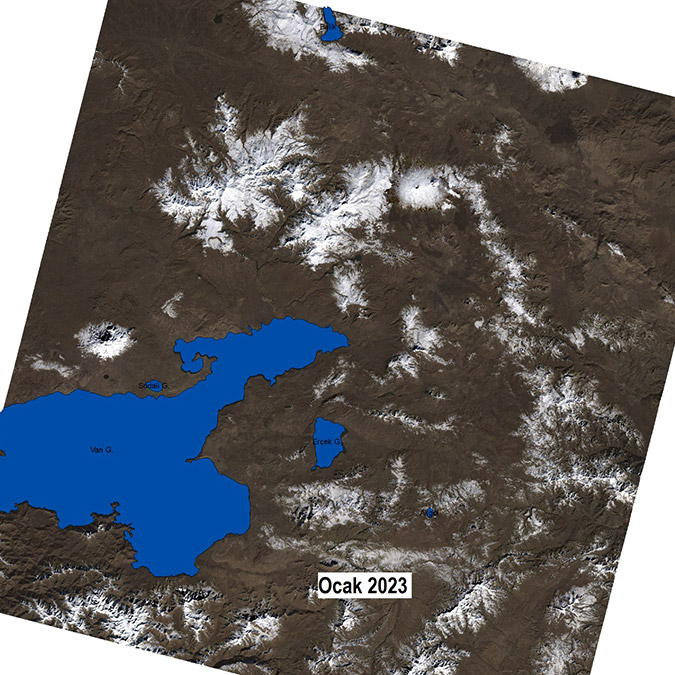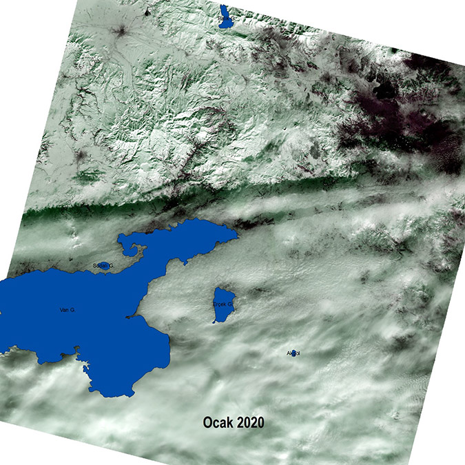 Van Yüzüncü Yıl Üniversitesi (YYÜ) Su Ürünleri Fakültesi Dr. Öğretim Üyesi Mustafa Akkuş, Van Gölü Havzası ve çevresini gösteren son 4 yılın ocak ayına ait Landsat uydu görüntülerini paylaşarak kuraklığa dikkat çekti.