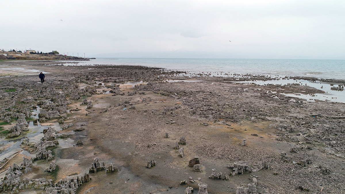 Van Gölü’ndeki kuraklığa dikkat çekmek için kar topu yapıp, kentin en işlek caddesinde dağıtan ressam Orhan Onuk (31), susuzluğun neden olduğu tehlikeleri anlattı. Onuk, “Özellikle son zamanlarda kuraklığa bağlı olarak gölde büyük çekilme var” dedi.