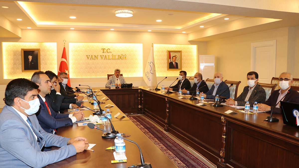 İl Hıfzıssıhha Kurulu, Vali Mehmet Emin Bilmez başkanlığında toplanarak, pandemi süreciyle ilgili değerlendirme yapıp, yeni karar aldı. Valilik Ali Paşa Toplantı Salonu’ndaki toplantıya Vali Yardımcısı Adem Balkanlıoğlu, Sağlık Müdürü Mahmut Sünnetçioğlu, Çevre ve Şehircilik İl Müdürü Ali Kemal Atlı, Tarım ve Orman İl Müdürü İbrahim Görentaş, İl Milli Eğitim Müdürü Hasan Tevke, İl Müftü Yardımcısı Sacit Emiri, Tabipler Odası Başkanı Hüseyin Yaviç, Eczacı Odası Başkanı Fikret Baransel, Van Eğitim Araştırma Hastanesi Başhekimi Kamil Yavuzer, Büyük Şehir Belediyesi Sağlık İşleri Daire Başkan Vekili Sedat Ünal katıldı.