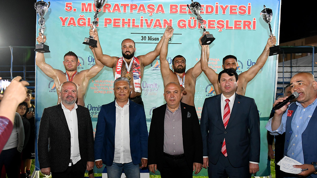 Finalinde rakibi İsmail Balaban’ı yenen Muratpaşa Belediyespor güreşçisi Orhan Okulu 5. Muratpaşa Belediyesi Yağlı Pehlivan Güreşleri’nin başpehlivanı oldu. Güreşlerde Başpehlivan Okulu’yla birlikte derece yapan Serhat Gökmen, Fatih Atlı ve İsmail Balaban’a kupa ve madalyalarını Başkan Uysal, CHP İl Başkanı Nuri Cengiz ve Muratpaşa Belediyespor Başkanı Özcan Yılmaz takdim etti.