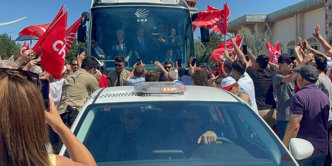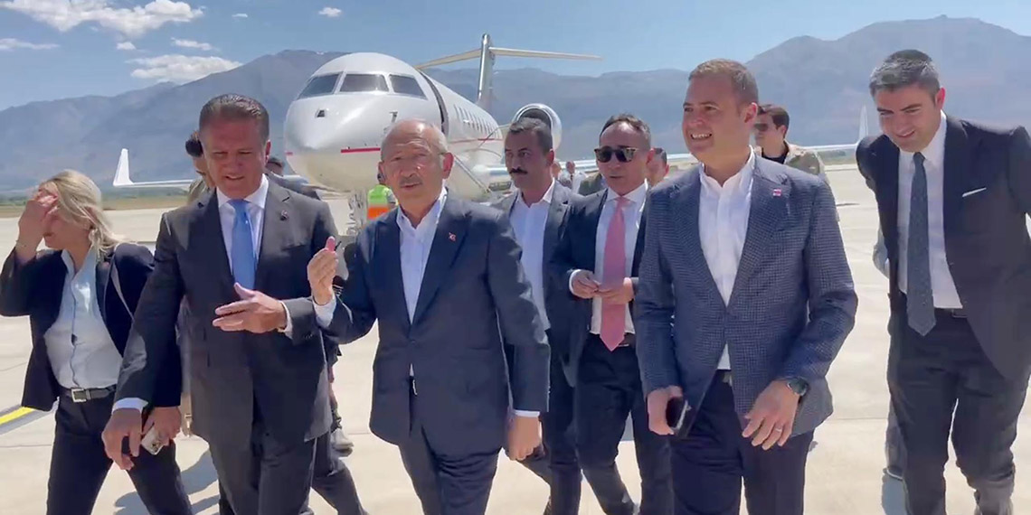 Bugün saat 14.00’te uçakla Erzincan’a gelen CHP Genel Başkanı Kemal Kılıçdaroğlu, hava limanında CHP Erzincan Milletvekili Mustafa Sarıgül ve partililer tarafından karşılandı. Beraberindeki heyetle birlikte kara yolu ile son yerel seçimde CHP’nin 61 oy aldığı Tercan ilçesine giden Kılıçdaoğlu’nun bulunduğu otobüsün önü, Üzümlü kavşağı, Mutu köprüsü ve Mercan ilçe girişinde partililer tarafından kesilerek sevgi gösterilerinde bulunuldu. Konvoy eşliğinde miting yapacağı Tercan ilçesine Mustafa Sarıgül ile giriş yapan Kemal Kılıçdaroğlu burada da partililer tarafından çoşkuyla karşılandı.