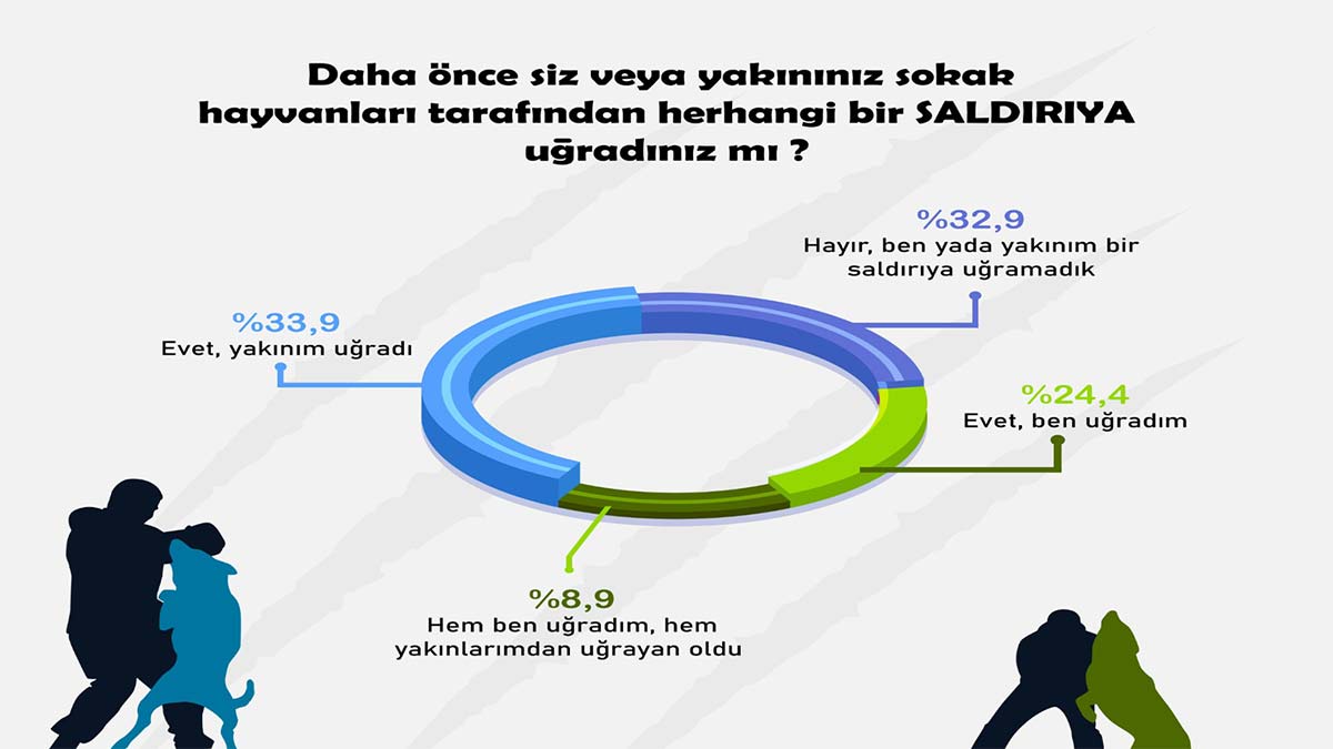 ‘Sokak hayvanları tarafından siz veya bir yakınınız herhangi bir saldırıya uğradınız mı?’ sorusuna ise yüzde 33,9’luk dilim, bir yakınının saldırıya uğradığını dile getirdi. Kendisinin saldırıya uğradığını söyleyenler ise yüzde 24,4 düzeyinde seyretti.