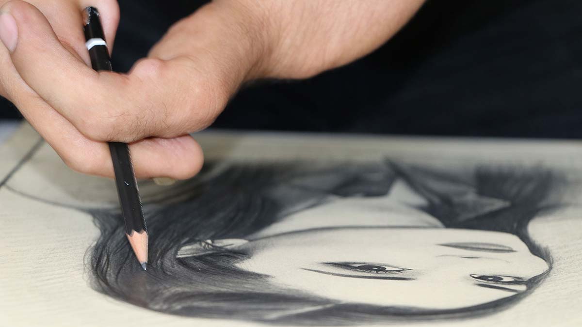 Van’da, doğuştan elleri olmayan, Yüzüncü Yıl Üniversitesi (YYÜ) Güzel Sanatlar Fakültesi 2’nci sınıf öğrencisi Vedat Kiyat (34), dirseklerine yerleştirdiği kara kalemle portre resimler çiziyor.