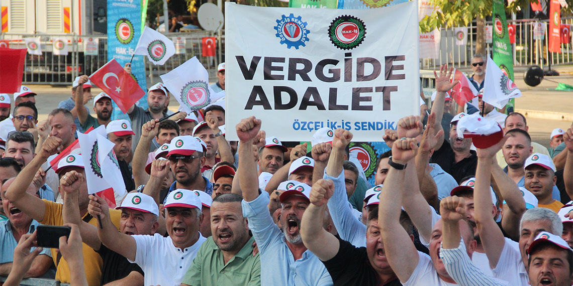 Arslan son olarak, “Örneğin Almanya’da bir işçi bekarsa farklı bir vergi oranı ödüyor, evliyse farklı. Bir çocuk varsa farklı. Dolayısıyla aile yükümlülüklerine göre orada vergiler değişiyor. 4 çocuğunuz varsa siz, vergi indirimleriyle Almanya’da bir ay yaşayabiliyorsunuz. Biz de öyle değil. Bekar işçimiz de 4 çocuklu işçimiz de aynı vergiyi veriyor. Bunu da ortadan kaldıralım istiyoruz. Dolayısıyla HAK-İŞ’in çalışmasının bütün bu ayrıntılarını kamuoyuyla da paylaştık. Vergiyi toplamak önemli ama bu vergi nereye gidiyor? Vergiyi topladınız, eğer bu vergi birilerine bir şekilde teşviklerle gidiyorsa bu da doğru değil. O zaman verginin hakkaniyetli olarak toplandığı gibi dağıtımını da yapmamız gerekiyor. Onun için bu mitinglerin birinci temel ögesi vergi. Vergi sistemini adil bir noktaya taşımamız gerekiyor” ifadelerine yer verdi.