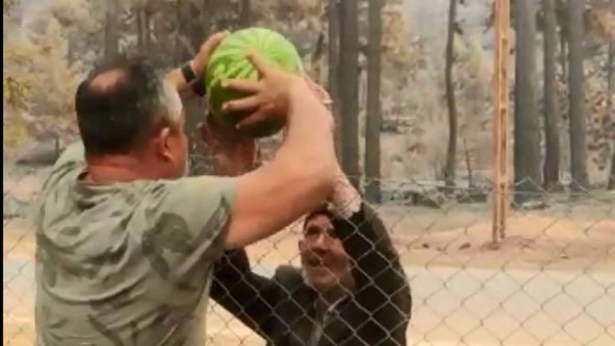 Antalya’nın Alanya ilçesi Gülbahar köyünde çıkan orman yangınında evi yanan Hüseyin Yıldırır (93), bahçesinde alevlerin ulaşmadığı karpuzlardan orman işçilerine ikram etti. Yıldırır, “Bundan sonra ne yapacağım ben evi barkı; milletimiz ve devletimiz huzurlu olsun. Bana köşk yapsalar, devletim huzursuz olduktan sonra ne yapayım ben köşkü?” dedi.