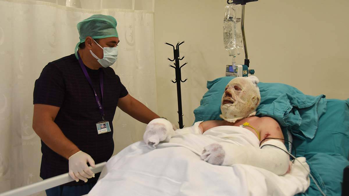 Geldiği gece hastaya ilk cerrahi müdahalesini yaptık sonrasında 2 kez daha ameliyat ettik. Yoğun bakıma yatışının 4’üncü günü. 1 hafta daha yoğun bakım süreci olacak gibi. Hastamızın vücudunda yüzde 40 yanığı var. Gerekli tedavileri devam ettiriyoruz. Cerrahi tedavileri, ilaç ve medikal tedavileri devam edecek. Daha sonrasında da psikolojik ve fizik tedavi süreçleri devam edecek. Yüzde 40’ın üzerindeki yanık, yaşı ile beraber hayati tehlikesi olan bir yanık düzeyiydi. 2-3 gündür tedavisi iyi gidiyor. Her şey yolunda” dedi.
