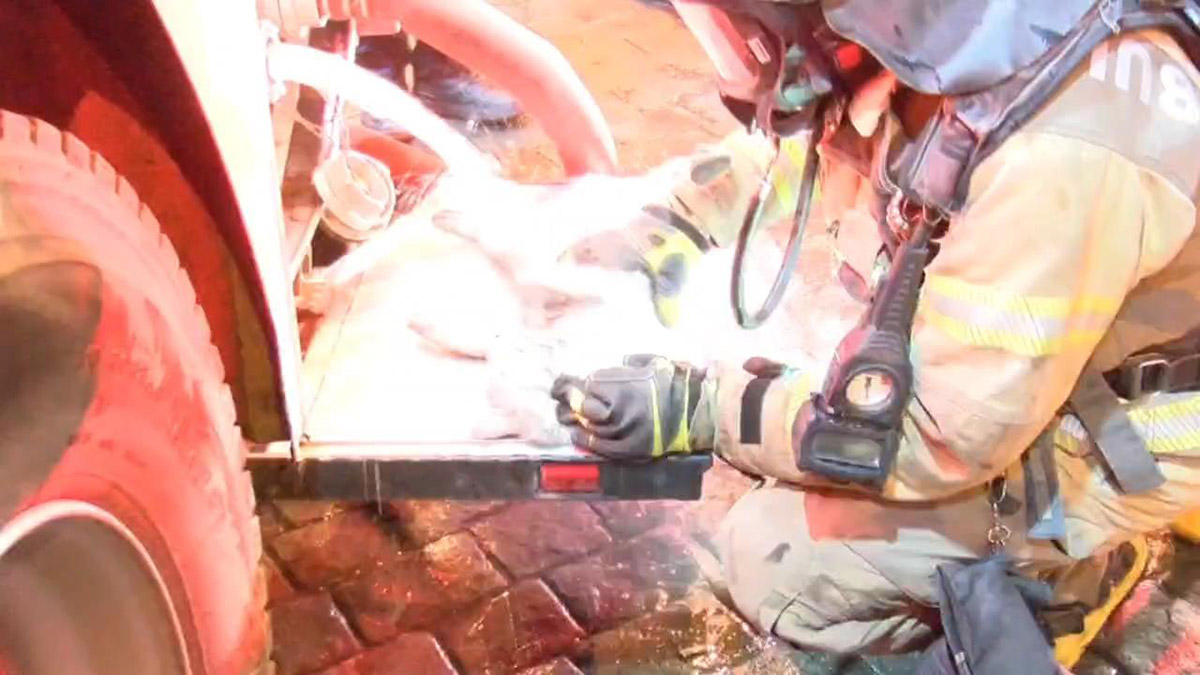 DUMANDAN ETKİLENEN KEDİYE İTFAİYE ERLERİ KALP MASAJI YAPTI