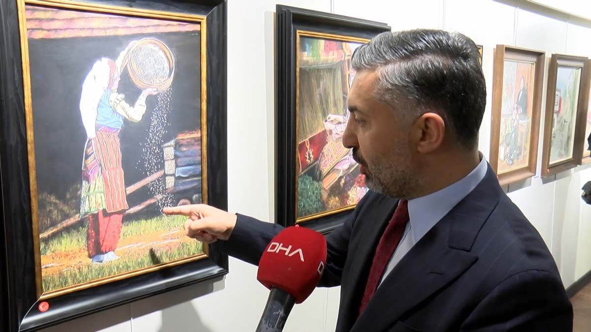 Ressam Kardaş ise gözüne ve gönlüne hoş gelen resimleri yaptığını belirterek, “Yurt dışına gittiğim zaman hep gördüm ki onlar milli bayramlarında ailecek geleneksel kıyafetlerini giyip o bayramları coşkuyla yaşıyorlar. Bizlerde böyle şeyler maalesef yok. Ben bu sebeple bu yola girdim. Kaynak araştırdım fakat kaynaklarımız çok yetersiz. Ben hem o devri yaşatmak istedim hem de o devrin kadınının hangi el aletleriyle çalıştığını görmek istedim. Onlar arasından bulabildiklerimi çalıştım. Bu kültür bizim kültürümüz” diye konuştu.