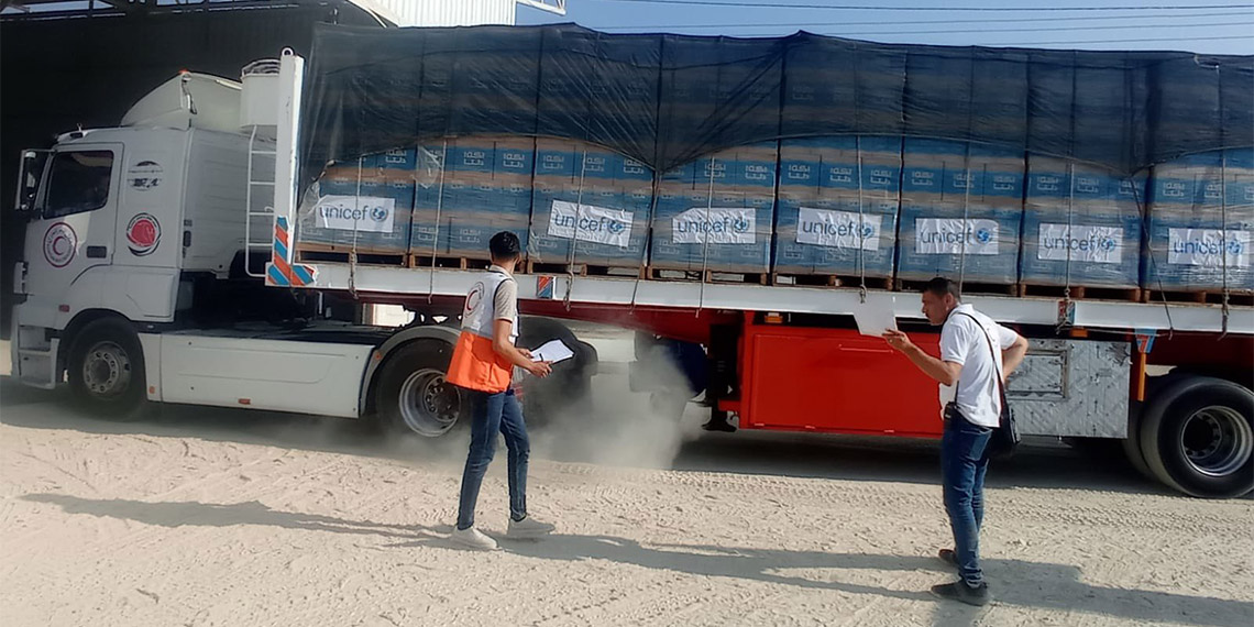 Filistin Kızılayı, yardım malzemesi yüklü 55 kamyonu daha teslim aldıklarını duyurdu.