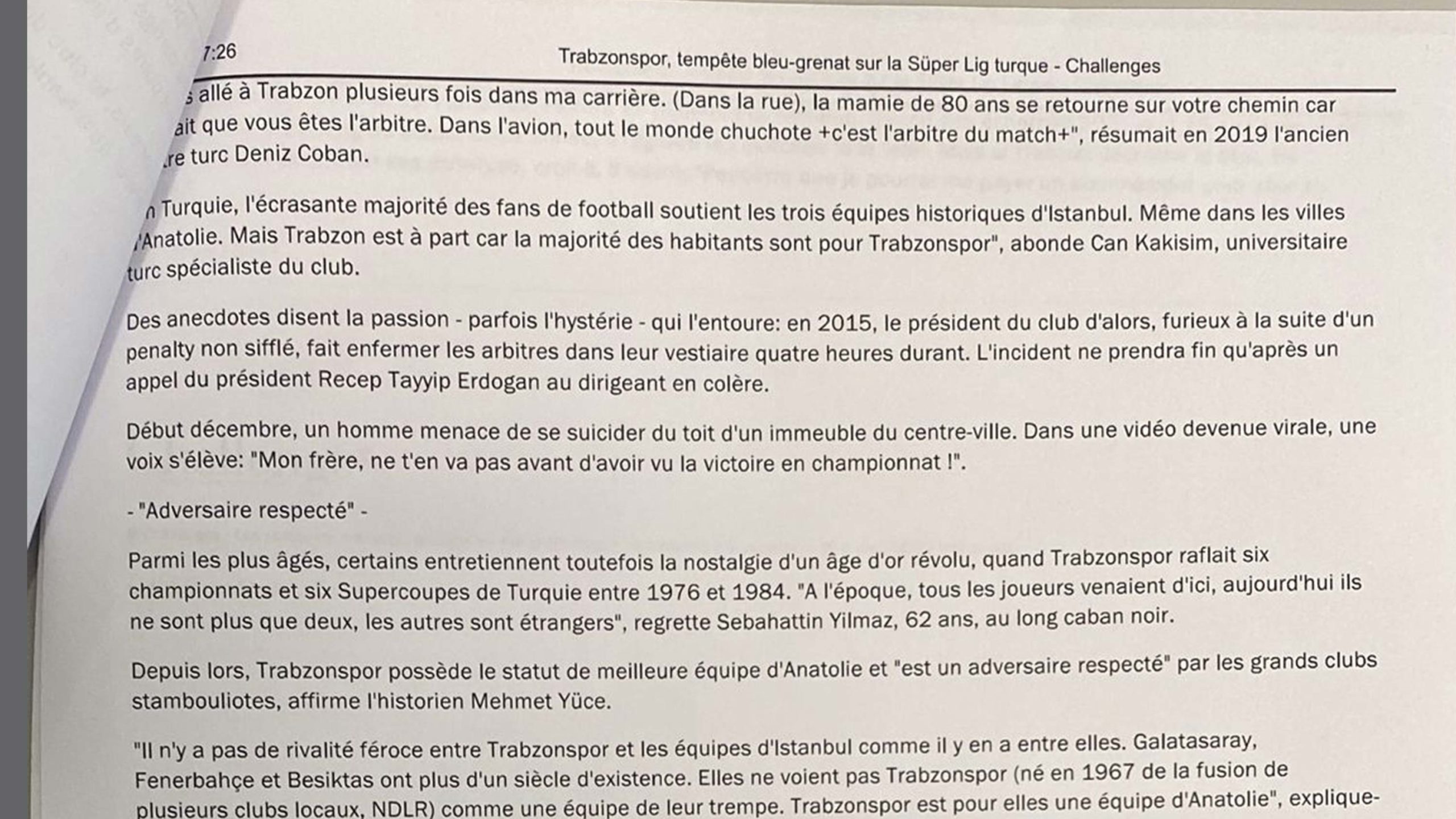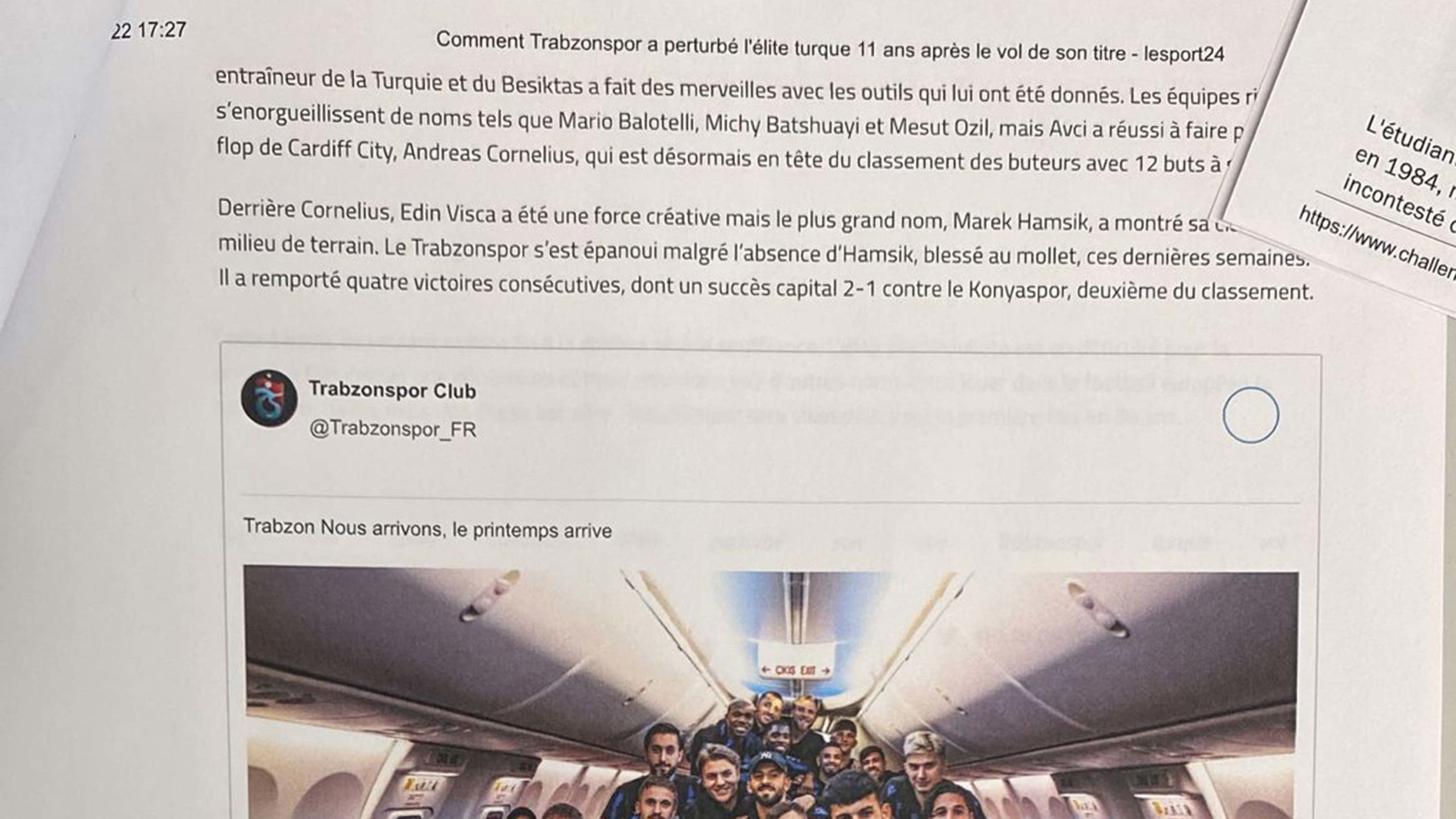 Paris’te inşaat firmasında çalışan Trabzonlu gurbetçi Mustafa Likos’a, 5 yıl önce karıştığı kavgaya ilişkin yargılandığı mahkemece yurt dışına çıkış yasağı konuldu. Yargı süreci süren ve Süper Lig‘de lider olan takımı Trabzonspor’un, memleketi Trabzon’da olası erken şampiyonluk kutlamalarına katılmayacağı için üzülen Likos, farklı yönteme başvurdu. Likos, davasına bakan yargıç Celine Martini’ye kaleme aldığı mektubu göndererek, tutkusu olduğu camianın kutlamalarına ve maçını tribünde izleme istediğini iletti.