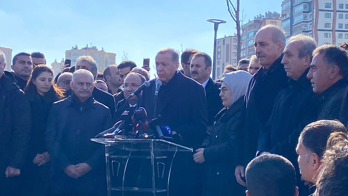 Çarşamba günü Kahramanmaraş ve Hatay’ı, dün Adıyaman’ı yerinde gördük. Aksaklıkları tespit edip gereken talimatları verdik. İnşallah buralardaki çalışmaları hızla bitirerek ölü veya diri enkaz altında hiçbir vatandaşımızı bırakmayacağız. Ardından da hızla enkaz kaldırma ve yeniden inşa faaliyetlerine başlayacağız. Yüzbinlerce konutu altyapısı ve üst yapısıyla yeniden inşa edecek, daha doğrusu depremde büyük yıkıma uğramış şehirlerimizi yeni baştan kuracak planlamaları yapıyoruz. Birkaç haftaya kadar da somut adımları atmaya başlayacağız.