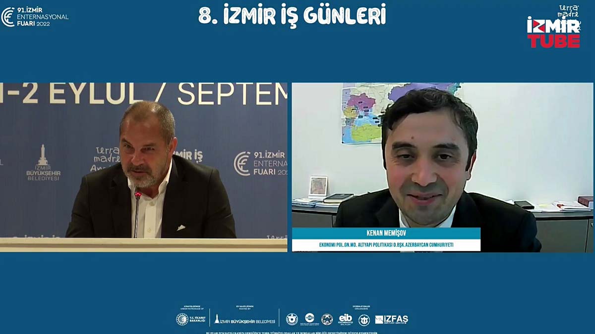 91’inci İzmir Enternasyonal Fuarı kapsamında, Türkiye Cumhuriyeti Ticaret Bakanlığı koordinesindeki 8’inci İzmir İş Günleri’nde, İMEAK Deniz Ticaret Odası İzmir Şubesi ev sahipliğinde, ‘Denizden Tarım Ticaretinde Güncel Trendler ve Rusya-Ukrayna Savaşı’nın Etkileri’ ile ‘Hazar Denizi’nin Lojistik Şartları-İmkanları’ konularının ele alındığı çevrim içi toplantı düzenlendi. Oturum başkanlığını İMEAK Deniz Ticaret Odası İzmir Şubesi Yönetim Kurulu Başkanı Yusuf Öztürk’ün üstlendiği toplantıya Dokuz Eylül Üniversitesi Denizcilik Fakültesi Öğretim Üyesi Prof. Dr. Okan Tuna ile Azerbaycan Ekonomi Bakanlığı Ekonomi Politikası Genel Müdürlüğü Altyapı Politikası Daire Başkanı Kenan Memişov katıldı.