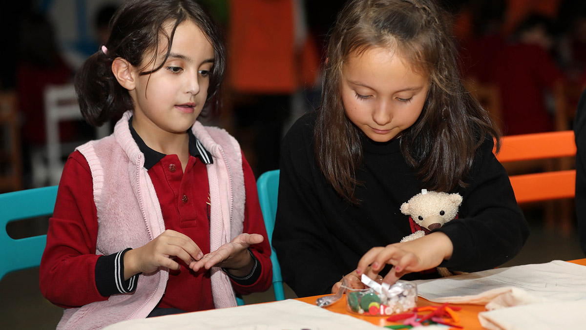 Alanında uzman eğitmenlerden geri dönüşüm ve atık azaltma konusunda eğlence dolu aktivitelerle bilgi alan Yenimahalleli minikler, tekstil atıklarından kendi çantalarını tasarlayarak kendi modalarını yarattı.