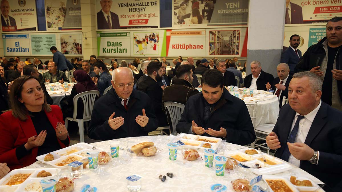 Birlik ve beraberlik içinde oruçlar açıldıktan sonra Yenimahallelilere seslenen Başkan Yaşar, “Bugün sizlerle beraber çocukluğumuzda mahallelerimizde, köylerimizde, kentlerimizde kurduğumuz gibi güçlü ile güçsüzün, fakir ile zenginin herkesin eşit olduğu bir sofrada bulunmaktan onur duyuyorum.