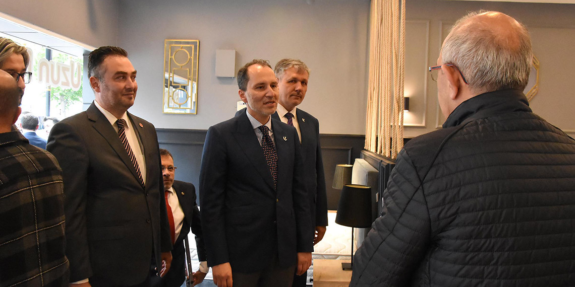 Yeniden Refah Partisi Genel Başkanı Fatih Erbakan, seçim sonrası başlattığı teşekkür ziyaretleri kapsamında Kütahya’ya geldi. Adnan Menderes Caddesi’nde esnafı ziyaret eden Erbakan, bölge halkıyla da sohbet edip, hatıra fotoğrafı çektirdi. Tarihi Meydan Camisi’nde öğle namazı kılıp ardından, Yeniden Refah Partisi İl Başkanlığı tarafından, bir düğün salonunda düzenlenen teşkilat buluşmasına katılan Erbakan, partililere seslendi.