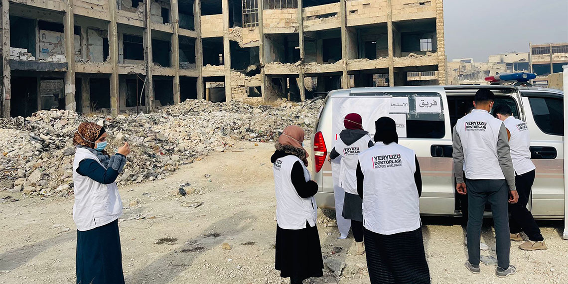 Yeryüzü Doktorları, Suriye krizinin başladığı ilk günden beri bölgede sağlık hizmeti sunarak bölgenin yerel sağlık sistemini destekliyor. Öyle ki 61 yıllık Baas rejiminin son bulması sonrası başlayan bölgedeki nüfus artışına ve sağlık ihtiyacına cevap vermek için dernek çalışmalarını aralıksız sürdürüyor. Bu kapsamda Yeryüzü Doktorları, rejim güçlerinin çekildiği ve sağlık ihtiyacının yüksek olduğu Halep’te mobil sağlık ekibiyle tıbbi ve insani yardım faaliyetleri yürütmeye başladı.