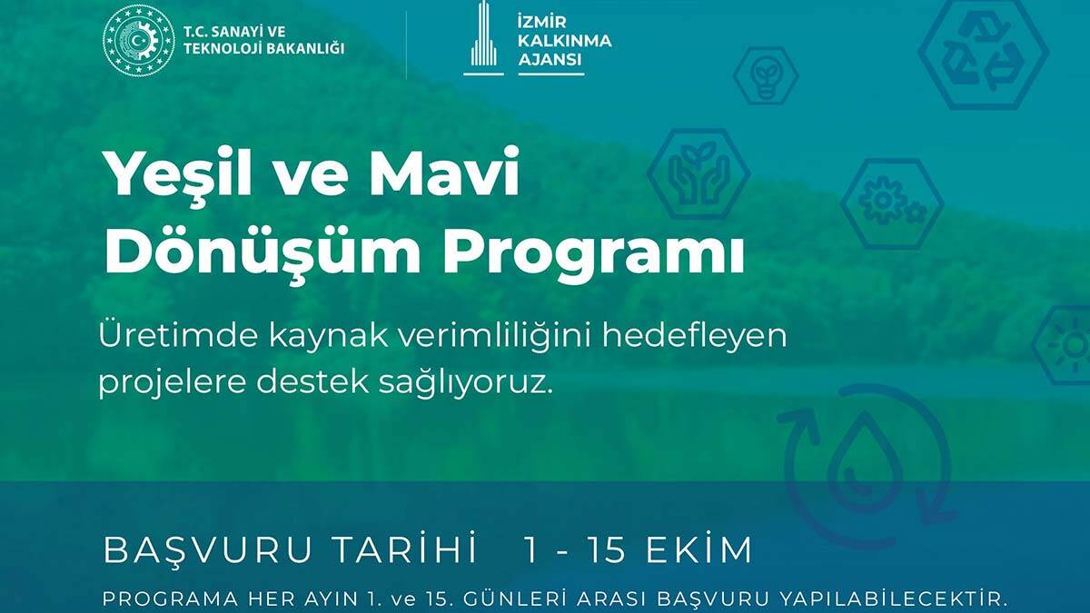 İzmir Kalkınma Ajansı’nın (İZKA), İzmir’de sürdürülebilir üretim tekniklerini yaygınlaştırmak ve yerlileştirmek üzere başlattığı ‘Yeşil ve Mavi Dönüşüm Programı’ ile özgün ve örnek projelerin destekleneceğini duyurdu. Programa başvuruların 1 Ekim’de başlayacağı bildirildi.