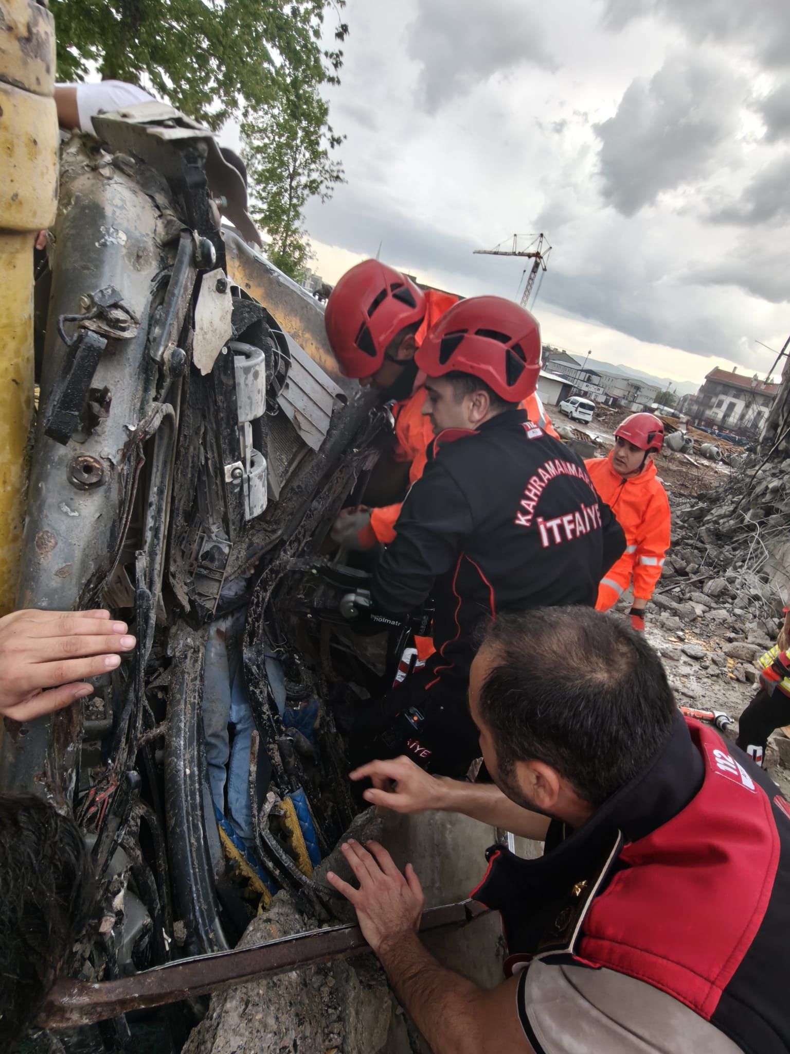 Kahramanmaraş’ta rezerv alanda kalan otoparkın yıkımı sırasında enkaz altında kalan iş makinesinin operatörü Yalçın Karadoğan (23) yaralandı.