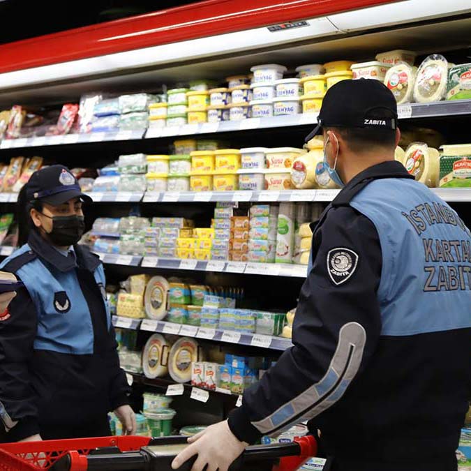 Yılbaşına öncesi Kartal Zabıta ekipleri marketlerde fahiş fiyatları ve satılan yılbaşı ürünlerinin halk sağlığına uygunluğunu denetledi
