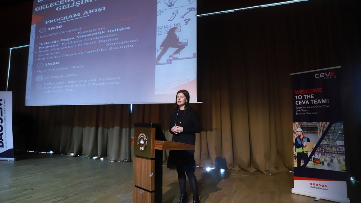 Kapanış töreninde, süreci başarıyla tamamlayan katılımcılar sertifikalarını CEVA Logistics Genel Müdürü Fuat Adoran ve İnsan Kaynakları Kıdemli Başkan Yardımcısı Nihan Usanmaz‘dan alırken Fuat Adoran, “Öncelikle BAUSEM’e, değerli yöneticilerime, eğitmenlere ve İnsan Kaynakları Kıdemli Başkan Yardımcısı Nihan Usanmaz’a ve ekibine, değişimi takip ettikleri ve kendimizi güncelleyeceğimiz programın gerçeklemesindeki tüm gayretleri için teşekkürlerimi sunuyorum. Sevgili katılımcılarımız, bu program içerisinde elde ettiğiniz değerli bilgileri sırt çantalarınıza koyacağınıza ve ihtiyacınız olduğunda ileride kullanacağınıza eminim. Hem katılımınız hem de mezuniyetiniz için sizleri tekrar tebrik ediyorum” dedi.