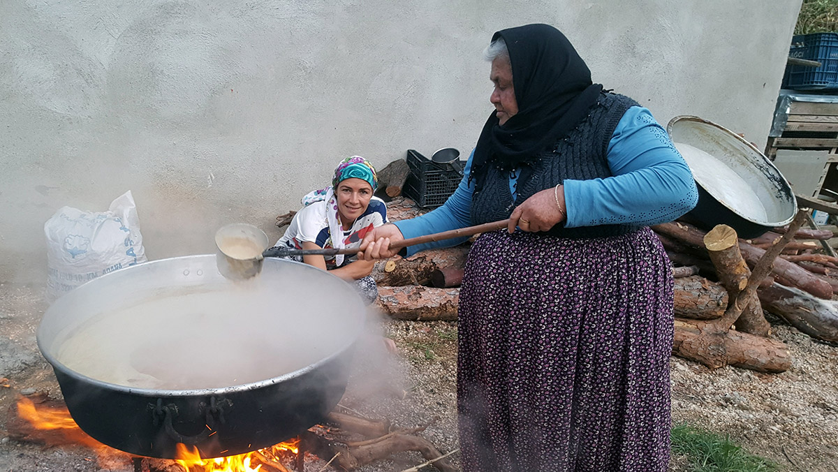Bu işlem diğerlerinden daha zor çünkü nar suyu çok kaynattıkça kazandan taşar. O nedenle sürekli su kabağından hazırlanan kevgirlerle savurmak gerekir. Savururken, çıkan köpüğü atmalısınız yoksa ekşiniz kekre ve lezzetsiz olur. Bu nedenle bu işlem 5-6 hatta 10 saat sürebilir ve bu süre içinde başından ayrılamazsınız” dedi.