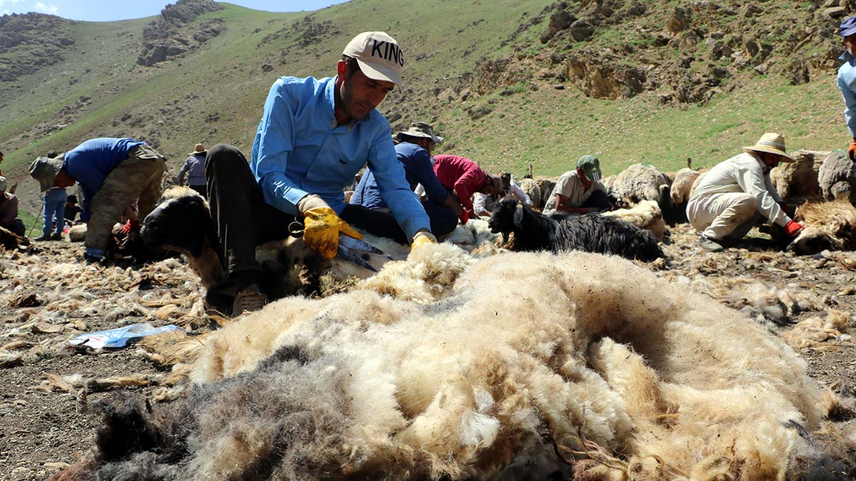Yüksekova ilçesinde kışın ağıllarda beslenen hayvan sürüleri, karların erimesiyle zengin bitki örtüsüne sahip yüksek rakımlı yaylalara çıkmaya başladı. Uzun geçen kış mevsiminin ardından hayvanlarını yaylalarda otlatarak yemden tasarruf eden besiciler, şimdi de koyunların rahatlaması, et ve süt veriminin artması için yünlerini kırkıyor. İlçeye 20 kilometre uzaklıktaki Cilo Dağı eteklerindeki Zeynep Yaylası’na çıkan besiciler, kırktıkları koyun yünlerini satarak aile bütçelerine katkı sağlıyor.