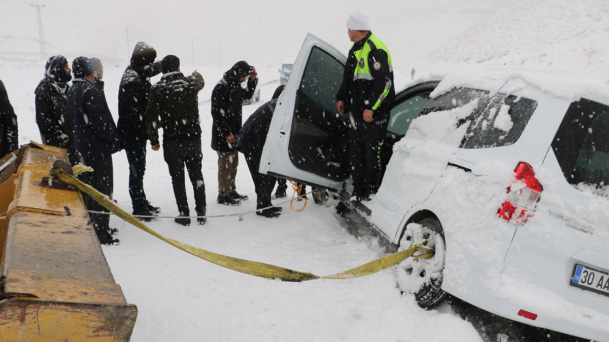 Yüksekova Belediyesi’ne bağlı iş makineleri, yolu kardan temizleyip araçları halatlarla bulundukları yerden çıkardı. Kar yağışının ilçede pazar gününe kadar aralıklarla devam edeceği bildirildi.