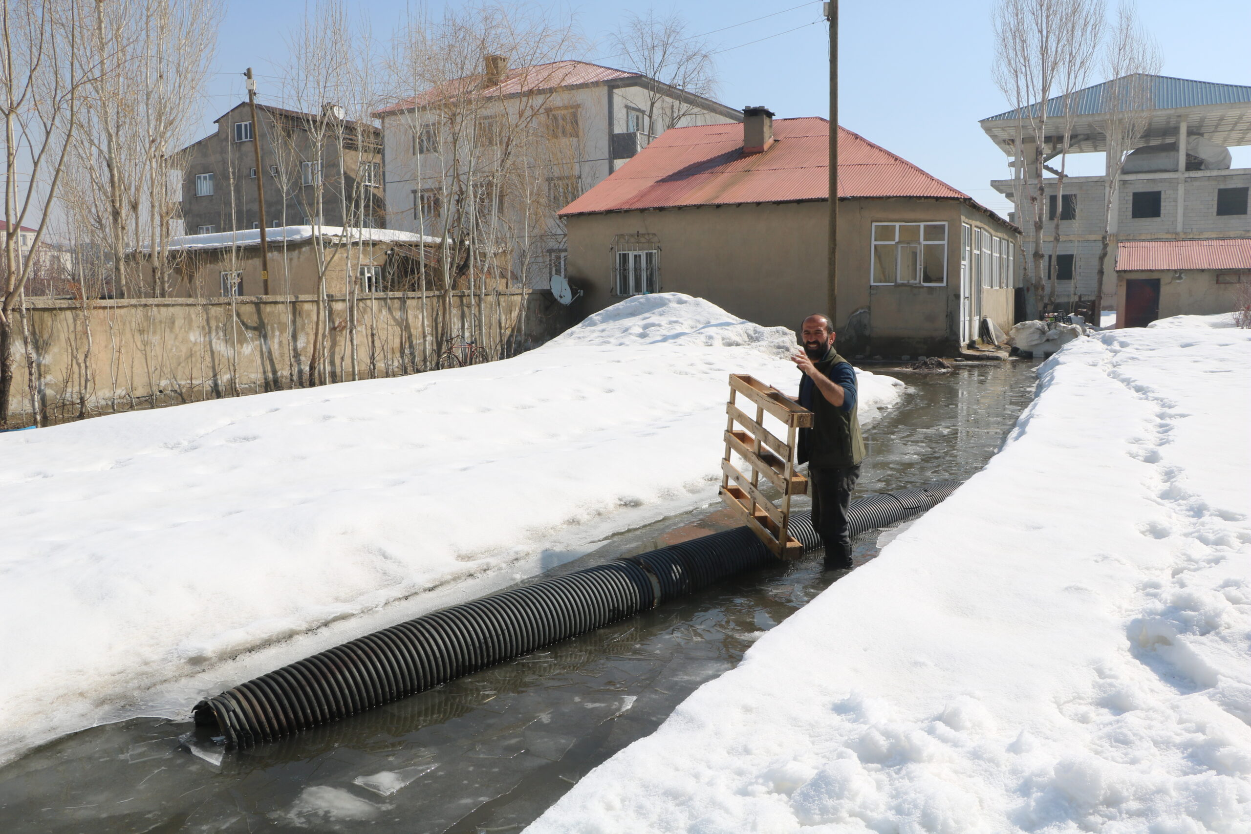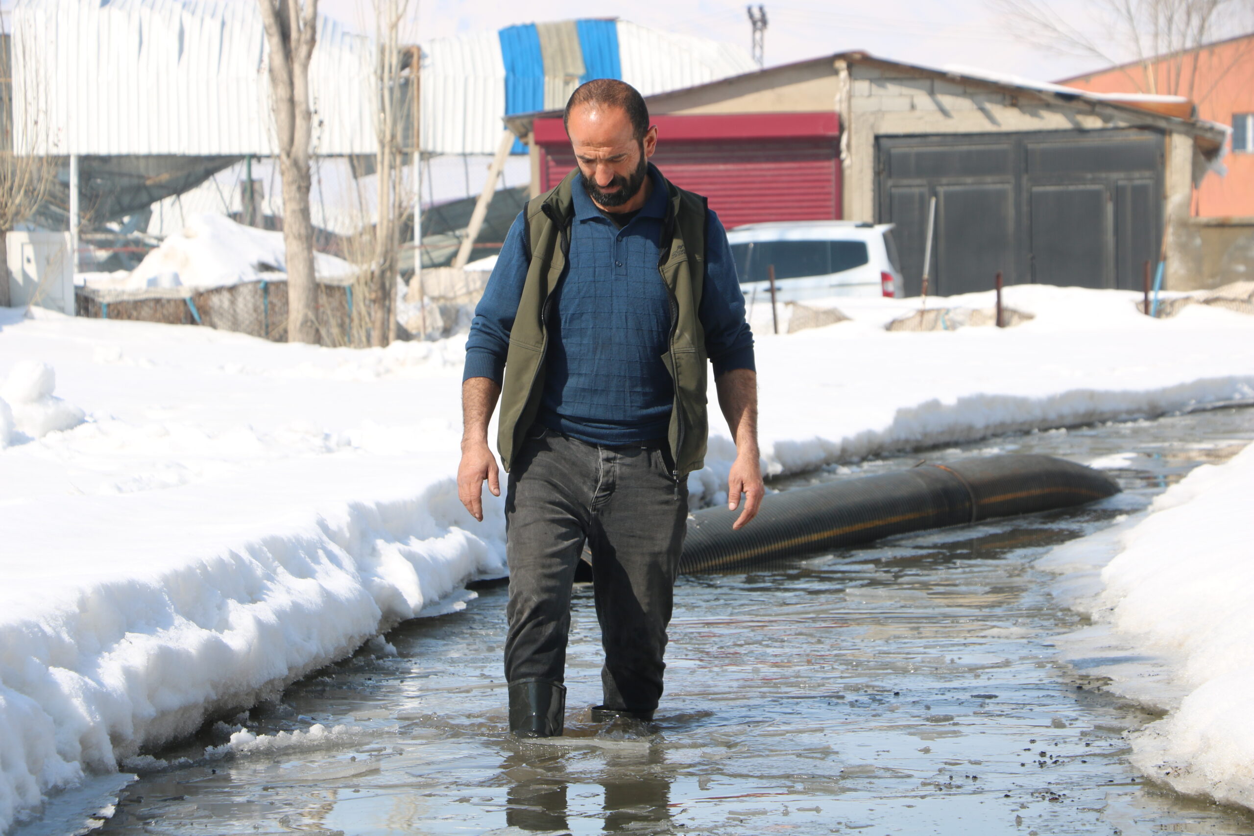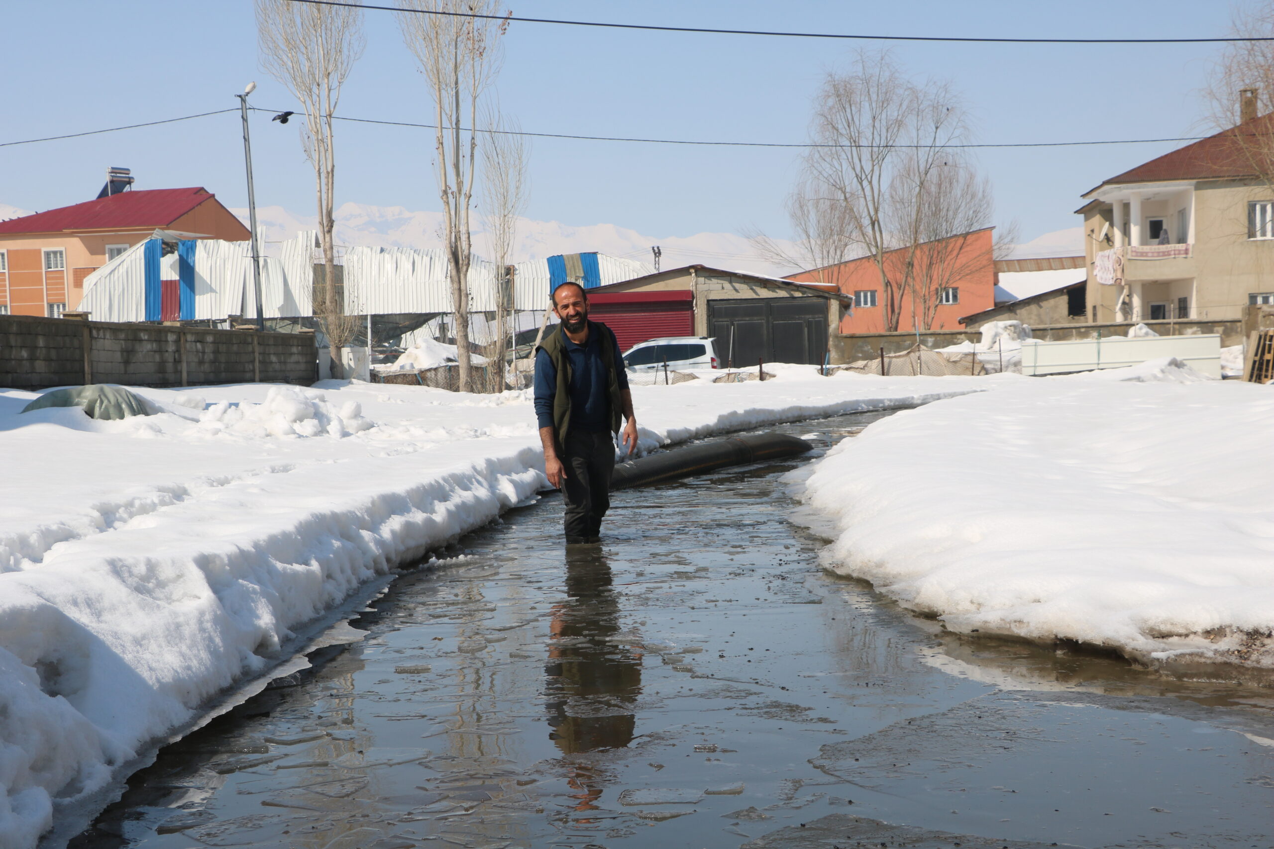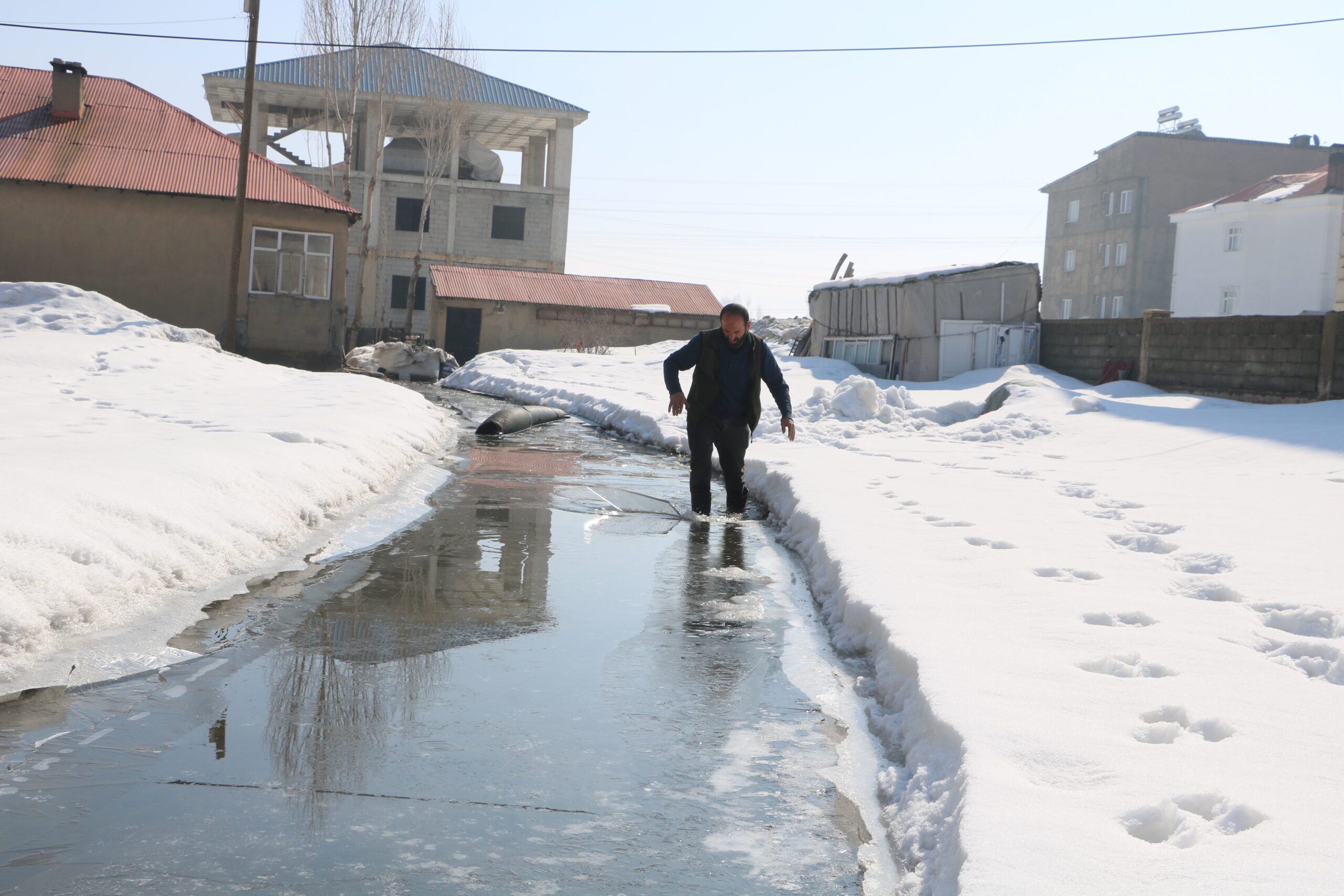 İlçede etkili olan karla karışık yağmurun ardından rögarlar taştı, Yeni Mahalle'deki bazı evler su altında kaldı. 5 kişilik Dilce ailesi de su altında kalan evleri için yardım istedi. Ev sahibi Cengiz Dilce, "2018 yılında yapılan altyapıdan sonra rögar suları tıkanınca hepsi benim evin önüne akıyor. 8 yıldır aynı sorunu yaşıyoruz. Her yıl yaklaşık 3 ay boyunca evime rögar suları doluyor. Defalarca belediyeye başvurdum ama bir çözüm bulunamadı" dedi. Mahalledeki tüm rögar sularının kendi evlerinin önünde toplandığını söyleyen Dilce, "3 ay boyunca bu şekilde yaşıyoruz. Yetkililerden kalıcı bir çözüm bekliyoruz" diye konuştu.