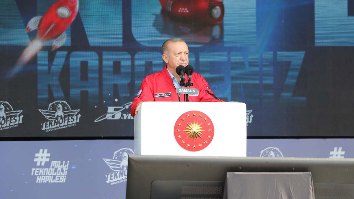TEKNOFEST’te konuşan ve sözlerine ülkeye iftihar verici markayı kazandırdığını belirttiği Türkiye Teknoloji Takımı Vakfı ile onunla yürüyen tüm kurumlara teşekkür ederek başlayan Cumhurbaşkanı Erdoğan, “İlk kıvılcımını İstanbul’da bir avuç gencin yaktığı bu ateş, artık tüm Anadolu’yu ve hatta tüm bölgemizi kuşatmıştır. Bu yıl beşincisi düzenlenen dünyanın en büyük havacılık, uzay ve teknoloji festivalinin kapsama alanı artık sınırlarımız dışına taşmıştır. Geçtiğimiz mayıs ayında Azerbaycan’ın başkenti Bakü’de düzenlenen TEKNOFEST’i gururla takip ettim. Bugün de TEKNOFEST Karadeniz’de sizlerle birlikteyiz. Karşımdaki bu muhteşem tablo bir şeyi ifade ediyor.
