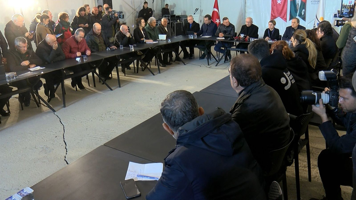 CHP Merkez Yürütme Kurulu (MYK) toplantısı, Genel Başkan Kemal Kılıçdaroğlu başkanlığında, Kahramanmaraş merkezli 2 depremle felaketi yaşayan Hatay’da toplandı. EXPO’21 çadırında yapılan toplantıda Hatay Büyükşehir Belediye Başkanı Lütfü Savaş, İstanbul Büyükşehir Belediye Başkanı Ekrem İmamoğlu ve Ankara Büyükşehir Belediye Başkanı Mansur Yavaş da vardı. Toplantı öncesinde Kahramanmaraş merkezli depremde hayatını kaybedenler ve CHP önceki dönem genel başkanı Deniz Baykal için saygı duruşunda bulunuldu.