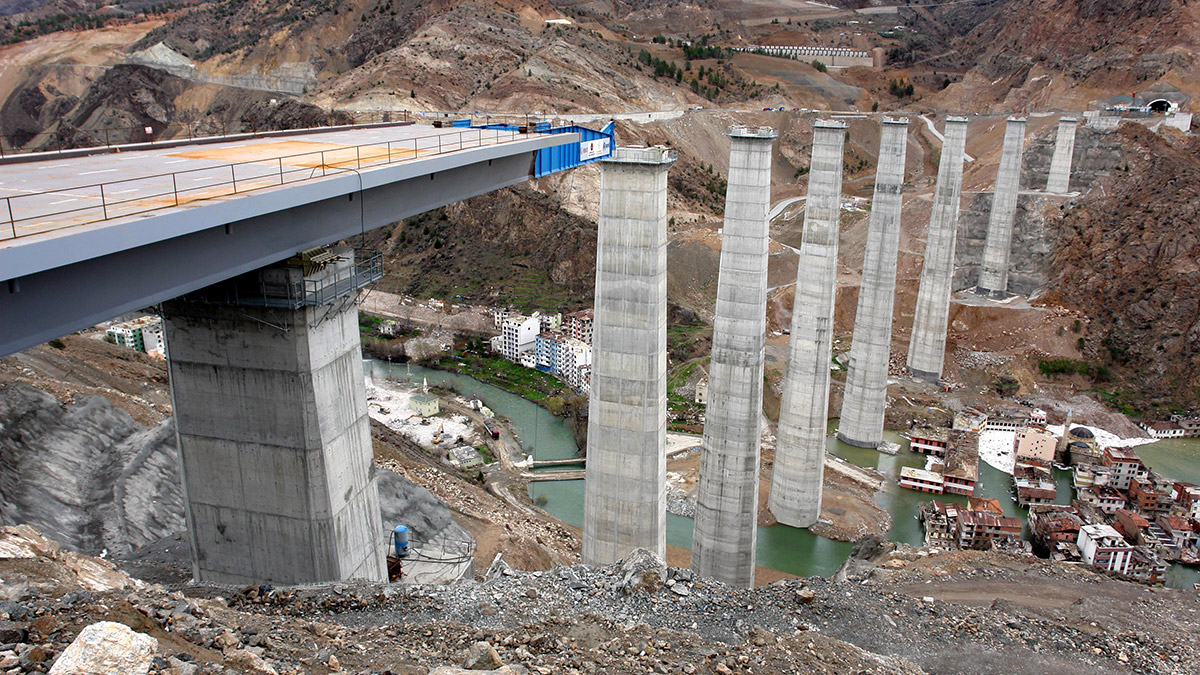 Artvin’de Çoruh Nehri üzerine inşa edilen Yusufeli Barajı’nda su seviyesi 91 metreye ulaştı. Yol ve köprülerin dipte kaldığı ilçede, baraj suları eski yerleşim yerinden geçen viyadük ayaklarına dayandı, terk edilen binaların büyük kısmı su altında kaldı.
