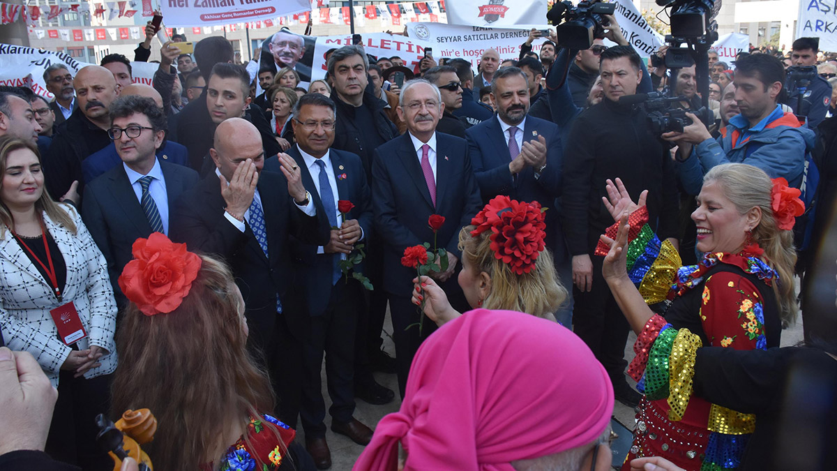 CHP Genel Başkanı Kemal Kılıçdaroğlu, İzmir programı kapsamında Ahmed Adnan Saygun Sanat Merkezi’nde düzenlenen Roman Buluşması Programı’na katıldı. Programda Roman vatandaşların dans gösterisi beğeni topladı. Etkinlikte Kılıçdaroğlu’nun yanı sıra İzmir Büyükşehir Belediye Başkanı Tunç Soyer, CHP İzmir İl Başkanı Şenol Aslanoğlu, ilçe belediye başkanları yer aldı.