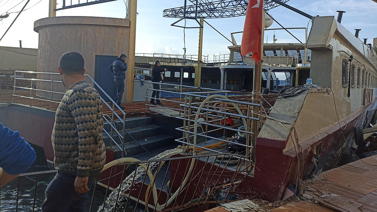 Öte yandan, akşam saatlerinde tonozdan ayrılan katamaran tipi yüzer disko, Kumbahçe’de faaliyet gösteren bir dondurma satışı yapılan işletmeye çarpıp, su alarak karaya oturdu. Çarpmanın etkisiyle işletmenin tentesi yıkıldı. Hemen yan taraftaki otelin, deniz kenarındaki korkuluğu tahrip oldu. Olayda yüzer disko da hasar aldı. Olay yerine Sahil Güvenlik ekipleri sevk edildi.
