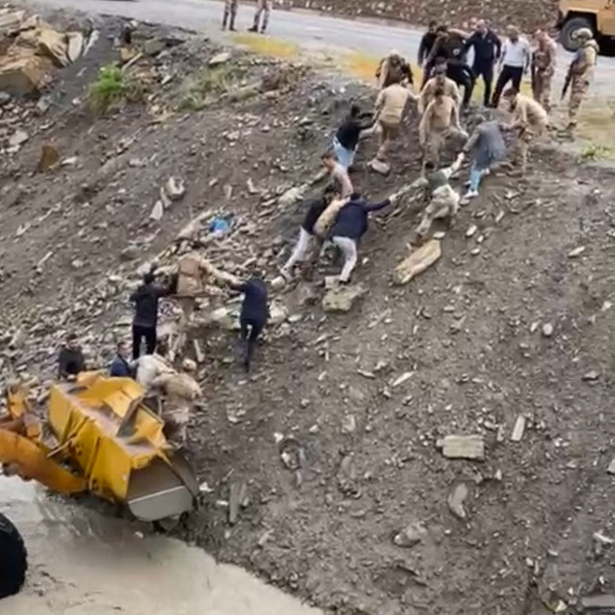 Hakkari’de yağış nedeniyle kayganlaşan yolda sürücüsünün kontrolünden çıkıp Zap Suyu’na uçan araçtaki 12 asker, hafif yaralandı. Askerler, vatandaşların da yardımıyla kepçeyle kurtarıldı.