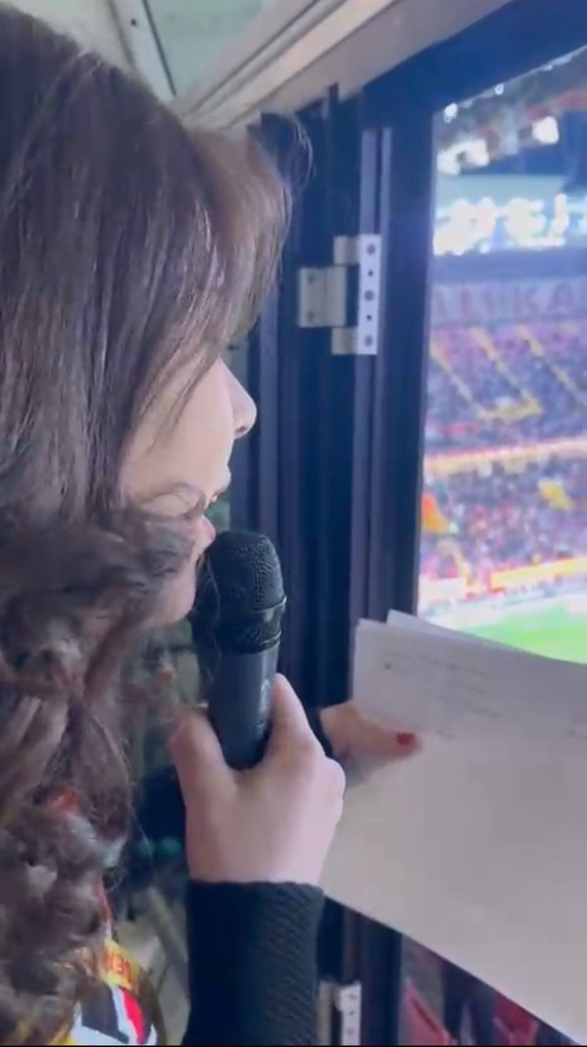 Süper Lig'in 25'inci haftasında Zecorner Kayserispor-Trabzonspor karşılaşmasında maç anonslarını sarı-kırmızılı takımın taraftarlarından Nur Çokeken yaptı.
