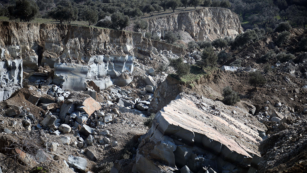 Hatay’ın Altıözü ilçesi Tepehan Mahallesi’ndeki zeytinlik depremde ikiye bölündü, 40 metre derinliğinde vadi oluştu. Mahalle azası İrfan Aksu, “Çöken alan 100 dönümden fazla. Böyle bir deprem yaşanmadı, sarsıntılar oldu ama böylesini görmedik” dedi.