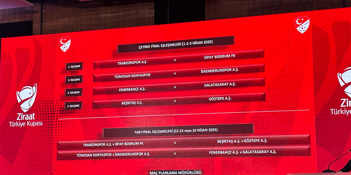 Ziraat Türkiye Kupası’nda çeyrek final ve olası yarı final eşleşmeleri belli oldu. Çeyrek final turunda Fenerbahçe ile Galatasaray eşleşti.