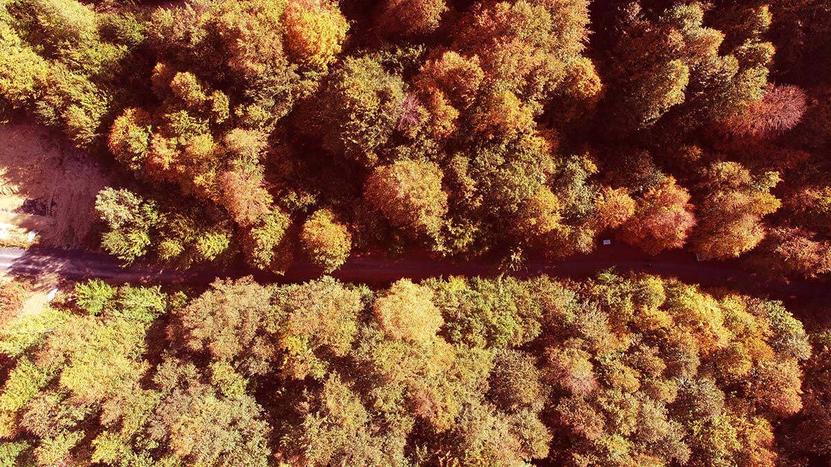 Zonguldak’ta kent ormanı, sonbaharla birlikte fotoğrafçıların gözdesi oldu; ziyaretçi akınına uğrayan kent ormanı, dronla havadan görüntülendi