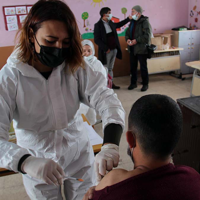 Ev ev dolaşarak sağlık taraması yapan ekipler, aynı zamanda köy okullarında toplanan vatandaşların da Covid-19 aşılarını uygulamaya çalışıyor.