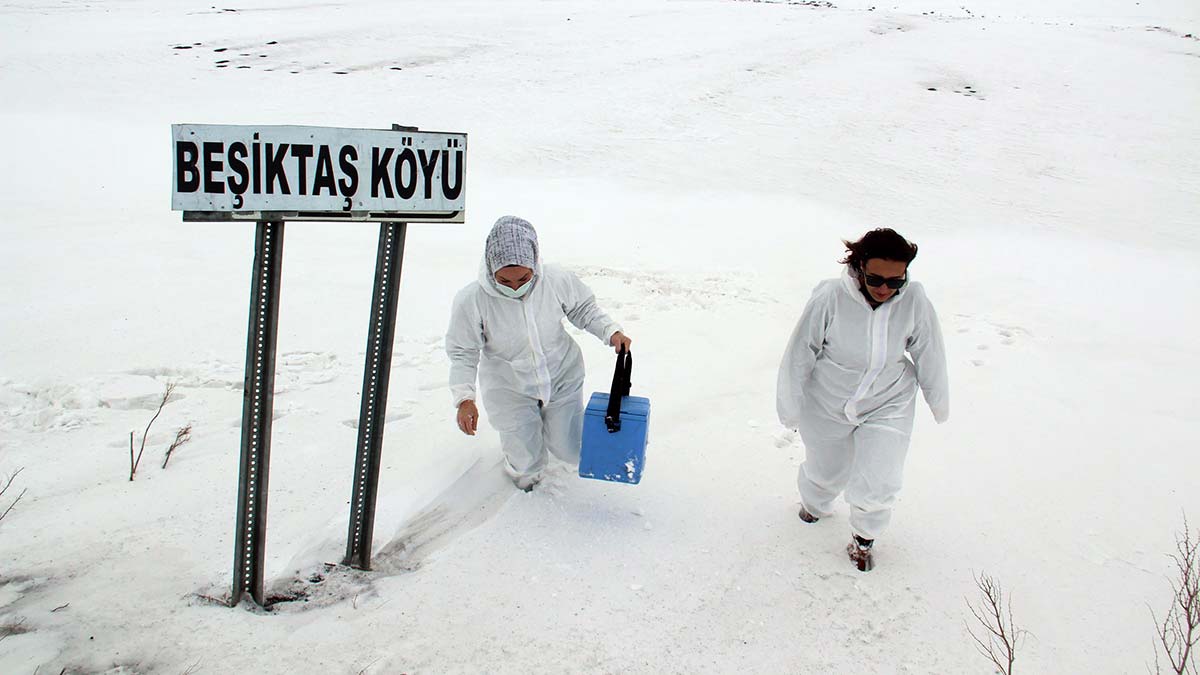 Merkeze 46 kilometre uzaklıktaki 370 nüfuslu Beşiktaş köyünde aşı çalışması yapan mobil ekipler, kar ve tipi nedeniyle zor anlar yaşadı. Aşı için geldikleri adresin önündeki köpeklerin saldırısına uğrayan ekipler, ev sahiplerinin müdahalesiyle kurtuldu.
